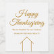 Esta etiqueta de vinho moderna para o Dia de Ação de Graças foi feita sob medida com o nome da sua empresa imobiliária sob a tipografia elegante. Esses adesivos minimalistas brancos e dourados apresentam um simples desenho de uma casa. São perfeitos para enviar aos antigos clientes compradores de imóveis para lembrá-los de indicar amigos e familiares que estão procurando comprar ou vender sua casa. O marketing de negócios imobiliários significa entrar em contato com clientes repetidos e pedir suas indicações. Somos gratos por seu negócio.