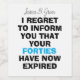**Descrição:** Esta hilariante etiqueta de vinho é o presente de aniversário milestone perfeito para qualquer pessoa que faça 50 anos! Apresentando o texto espirituoso "Seus quarenta anos já expiraram", este rótulo adiciona um toque humorístico a qualquer garrafa de vinho, fazer-o um presente inesquecível para celebrar um aniversário de 50 anos. O design é totalmente editável, permitindo que você personalize os detalhes de acordo com o destinatário. Quer você esteja querendo trazer alguma risada a uma festa de aniversário ou dar um presente engraçado e único, esta etiqueta de vinho é certamente um sucesso. É fácil de aplicar e imediatamente transforma qualquer garrafa em uma surpresa memorável de aniversário. Celebrar fazer 50 anos com estilo, humor, e, claro, vinho! rótulo de vinho engraçado, etiqueta de vinho de 50 anos, presente de aniversário de marcos, etiqueta de vinho editável, presente de 50 anos, etiqueta de vinho para 50 anos, etiqueta de aniversário humorística, fazer 50 pratos, etiqueta de vinho de aniversário, aniversário de marcos engraçados, 50 anos de idade engraçada, cinquenta anos, cinquenta anos de cinquenta anos, cinquenta anos, cinquenta anos, cinquenta anos de cinquenta anos, cinquenta anos, cinquenta anos, cinquenta anos, cinquenta, cinquenta, cinquenta anos, cinquenta anos, cinquenta, cinquenta anos, cinquenta anos, cinquenta, cinquenta, cinquenta, cinquenta, cinqurótulo do vinho,