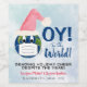 Estas etiquetas engraçadas de garrafa de vinho foram desenhadas tendo em mente a época de férias pandêmica de 2020. Eles apresentam um design giro e bobo com o planeta Terra vestindo um chapéu de Papai Noel e máscara facial, com uma legenda lendo "Oy to the world." Na nota lê-se: Enviando Férias Feriadas Apesar do Ano, com espaço para o seu nome e o conteúdo da garrafa ou tipo de vinho. Perfeito para vinicultores domésticos ou qualquer um que queira mandar um vinho para o Natal ou Chanucá.