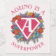 Envelhecer é um aniversário de superpotência, este design apresenta um emblema cor-de-rosa com flores e o texto dizendo, "Envelhecer é uma Superpotência". Uma piada relacionada à idade que é feminina e excelente para quase qualquer idade.