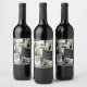 Moderno e mínimo na moda multifoto da família de fotos, decor elegante script texto de paz, alegria e amor Feriado Natal favorito etiqueta de vinho de presente. A cor preta moderna pode ser alterada.
