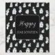 Fantasmas divertidos do Dia das Bruxas Bonitos, compostos de pequenos fantasmas brancos felizes num padrão preto. Um design excelente para a festa de Halloween, decorações caseiras.