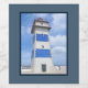 Design com tema náutico com decoração de farol com cor d'água em quadro azul escuro. É possível mudar a cor de fundo e adicionar uma diferente à design com sua escolha.