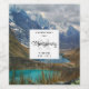 Etiquetas de garrafas de fazer de vinho com uma bela fotografia natural. Apresentando montanhas alpinas com neve e lagoas tranquilas enfiadas a dentro do vale dessas montanhas majestosas.