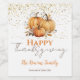Uma bela festa de Ação de Graças ou etiqueta de vinho de presente. Este fabuloso design apresenta abóboras de outono rústicas com folhas em castanhos e cores laranja quentes. Fácil de personalizar com seus próprios detalhes de celebração de ação de graças.