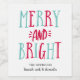 Personalize essas etiquetas de vinhos festivos de Natal com duas linhas de texto personalizado para criar um presente perfeito de hospedeiro ou toque personalizado para a sua propagação de janto de Natal. Design de Natal brilhante e colorido apresenta "feliz e brilhante" em letras vibrantes de vermelho e aqua.