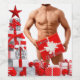 Feliz Natal SlipperyJoe Red White caixa prateada branca arcos musculares masculinos masculinos ornamentos de férias artístico árvore festiva de fundo estômago com seis pacotes de presentes orgulho gay LGBTQIA arrojado feriado único palhaço vários presentes embrulhados