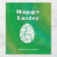Uma ilustração de Páscoa retrô com um ovo branco de arte em papel, em um fundo verde girado colorido.