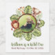 Para uma festa de primeiro aniversário com tema Wild One / animais de safári. Em torno de uma foto de criança em uma moldura de tronco de madeira marrom redonda, há um grupo de animais de selva fofos pintados em aquarela: um leão, uma girafa, um elefante e uma zebra, com folhas exóticas de monstera e palmeira entre eles, tudo isso parecendo uma flor verde. Abaixo de tudo isso, o texto "[Nome] é um Selvagem" está em uma fonte manuscrita verde, o restante em letras marrons menores. O nome padrão é William.