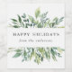Etiquetas de vinho botânico elegantes, com a saudação "Feliz Feriados" e seu nome enquadrado pela folhagem verde de aquarela. As etiquetas de vinho verde são perfeitas para festas de férias!