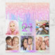 Para uma festa de aniversário de 21 (ou qualquer idade), celebrando sua vida com uma colagem de 5 fotos suas. Personalize e adicione um nome, 21 anos e uma data. Data de nascimento ou data da festa. Letras coloridas de cinzas roxas e escuras. Um pano de fundo cor-de-arco-íris em cor rosa, púrpura e verde-menta, decorado com pingos de brilho sujo, pingando tinta com aspecto roxo, rosa e dourado.