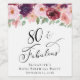 Etiquetas de vinho elegantes para sua festa de aniversário 80 que apresentam "80 & Fabuloso" em um roteiro de na moda e buquês de aquarelas de flores vermelho-burgundy, rosa-pincelado e roxo com verde-claro.