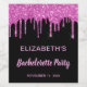 Rótulo de vinho personalizado divertido e feminino para a sua festa de despedida de solteira com brilho rosa quente cintilante descendo contra um fundo preto e "Festa de Despedida de Solteira" em uma fonte rosa quente. Você pode personalizar ainda mais com seu nome e data da festa.