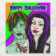 vampiro estilo pop, verde limão zombie e roxo. Vinho de festa de Halloween ou rótulo de vinho espumante.