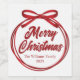 Um elegante e moderno script cursivo sobre uma linda fita vermelha e laço lê-se MERRY CHRISTMAS em tipografia cursiva elegante. Um laço amarrado é super tendência para os rótulos de vinho de festa de Natal de 2025. Personalize com o nome da sua família ou empresa no centro.