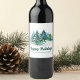 Este rótulo de vinho personalizado para festa de fim de ano de empresa apresenta belas árvores de Natal verdes em uma paisagem de inverno acima do nome da sua empresa personalizado e Felizes Férias. Decoração de Natal personalizada para uma corporação ou família.