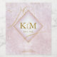 Um fundo de aquarela em tons de lavanda macia a mauve é tocado por um abstrato de linhas de ouro finas e efeitos de iluminação reluzentes para criar as peças desta bela suíte de casamento. A etiqueta de vinho de casamento mostrada aqui também apresenta uma estrutura gradiente em forma de diamante para segurar as iniciais da noiva e do noivo e a data do casamento. Você também tem a opção de adicionar o tipo de vinho e uma mensagem pessoal usando o modelo fornecido. Procure ID867 para ver outras peças e opções de cores para este conjunto.