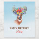 Veado moderno com flores coloridas sobre fundo azul gradiente. Monograma opcional