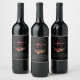 Personalize facilmente o seu nome de família e monograma em um rótulo de garrafa de vinho preto e vermelho sofisticado. O modelo de nome de família tem espaço para até onze letras e fica sobre o monograma, que está posicionado dentro de dois círculos de linhas finas. O monograma é acentuado por belas flores em aquarela em vermelho claret e verde de inverno. Abaixo do buquê, há um espaço para três linhas de texto personalizado e uma data. Se o texto precisar ser ajustado ou mais linhas forem necessárias, "clique para personalizar ainda mais" e os ajustes podem ser feitos na página de edição do modelo. Se precisar de ajuda, não hesite em nos enviar uma mensagem. Rótulo de Garrafa de Vinho com Monograma e Nome Personalizado Floral Vermelho de Inverno.