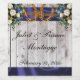 Esta design tem uma elegância rústica, mantendo-a um tema simples. fundo de madeira de casca com fita azul, ferraduras com nós e buquês de flor selvagem com marcadores para o nome do casal e data do evento. Projetado para coordenar com a coleção "Gettin' Hitched - Horsferes, Ribbon & Lace". Para alterar os detalhes, clique em "Personalizar". Para mover o texto ou alterar o tamanho, a fonte ou a cor do texto, clique em "Clique para personalizar mais"