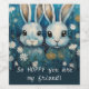 Um belo par de coelhos sentados num campo de flores com flores brancas.