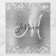 Garota cintilante prateado cintilante nos bordos superior e inferior sobre uma folha metálica fina de cinza prateada. As cores principais são prata, cinza, preto e branco. O monograma personalizado apresenta uma moderna combinação elegante de caligrafia branca e preta no cobrir frontal suave. Personalize os estilos de fonte para criar suas próprias etiquetas de vinho para seu evento especial.