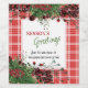 Rótulo único, clássico, de moda, bonito e decorativo da garrafa de vinho de Feriado empresarial. Feriados Felizes Gratos saudando texto e espaço para personalizar ou personalizar com uma mensagem de sua escolha na parte traseira da placa. Enquadrado por morangos vermelhos da Borgonha e buquês de coroa verde-escura num padrão típico de gingham tartan de xadrez vermelha e branca.