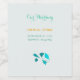 Essa etiqueta editável gira em torno das cores turquesas, com folhas de eucalipto dessa faixa no fundo e o nome da noiva e do noivo em laranja no topo.