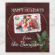Rótulo único, clássico, de moda, bonito e decorativo de vinho da época de Férias. Padrão de confete de ouro falso divertido sobre fundo vermelho escuro, com imagem de folha e avelã. Com espaço para personalizar com fotos de sua escolha, e personalizar com seu nome de família.