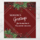 Etiqueta exclusiva, clássica, moderna, bonita e decorativa para garrafa de vinho de Natal corporativo. Texto de Boas Festas alegre e espaço para personalizar ou customizar com o nome da sua empresa e mensagem de sua escolha. Enquadrada por bagas de vinho tinto Borgonha e buquês de folhagem verde escura em um fundo de vinho tinto Borgonha escuro e sofisticado.