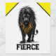 Estas etiquetas têm um leão retratado e dizem "feroz".