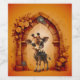 Girafa bebê em um desenho animado em frente à rosa. Descubra uma cena de arte digital encantadora: uma girafa bebê em um estilo de desenho animado bonito, decorada com engrenagens e relógios, está em frente a um arco de pedra decorado com rosas e engrenagens. Atrás dela, a luz quente irradia uma atmosfera fantástica e caprichosa.