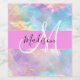 Nome do monograma holográfico iridescente e rótulo inicial da garrafa de vinho. Seu nome personalizado e monograma são escritos em um elegante roteiro escrito à mão com um fundo rosa. Um aniversário perfeito ou presente de Natal!