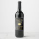 Crie as etiquetas personalizadas de garrafas de vinho preto e festa de formatura-ouro com na moda com o obrigado que você envia e modelo para o nome e o ano do formando. A tipografia é decorada com boné gráfico em cores amarelas ouros.