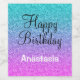 Etiqueta de vinho Feliz Aniversário personalizado com uma cor rosa/azul/turquesa/ aqua/ lilac/ púrpura brilha fundo ombre e elegante escrevendo preto e branco. Você pode adicionar facilmente o nome de sua escolha e alterar a cor e a fonte do nome usando a opção personalizar!