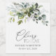 Adicione um toque pessoal à sua celebração de casamento com estes itens de na moda e festa memoráveis! Design apresenta folhas de eucalipto e verde em fundo branco.