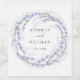 Grinalda de lavanda roxa em aquarela elegante e rústica com tipografia clássica e manuscrita no centro e rótulos de vinho com seus nomes e data de casamento. Perfeito para os favores de casamento rústicos para seus convidados.