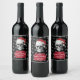 Adicione um olhar personalizado aos seus espíritos com esta etiqueta de vinho de Papais noeis do crânio gótico de Natal. A design apresenta um crânio resfriado vestindo um chapéu de Papai Noel contra um fundo preto com flocos de neve brancos. Fácil de personalizar com sua mensagem e seu nome.