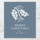 Adicione esta etiqueta festiva ao seu presente de vinho este Natal. Um gráfico de folhas e bagas sagradas aparece em branco sobre um belo fundo azul pastel. Uma mensagem simples "Feliz Natal" aparece abaixo do gráfico, juntamente com texto personalizado para o seu nome.