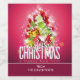 Etiquetas personalizadas com uma design gráfica de Natal brilhante e festiva. O texto diz Feliz Natal e Feliz ano novo. Projetado com um monte em forma de árvore de presentes com flocos de neve festivos, estrelas, bausolas de natal e faíscas brilhantes. Agulhas de pinheiros e ilustração em forma de árvore também estão incluídos nesta imagem de feriado. O fundo é uma cor rosa avermelhada vibrante.