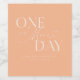 Um ensaio minimalista de casamento janta o rótulo da garrafa de vinho com texto tipográfico que diz "mais um dia". O fundo é pêssego.