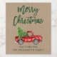 Kraft Brussel Watercolor Vintage Red Truck com Árvore de Natal - Etiqueta de Garrafa de Vinho
