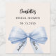 Um fundo bege cremoso. Decorado com um grande laço azul. Personalize e adicione o nome da noiva e uma data. Tipo de letra manuscrito preto. Texto: Algo azul antes de eu fazer.