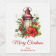 Rótulo De Garrafa De Cerveja Lanterna de Natal Vermelho Poinsettia e Pinheiro