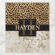 Manchas-leopardo castanhas e mármore de cor rica no fundo. O centro é deixado para personalização / personalização com um apelido ou sobrenome e monograma inicial. Elegante e na moda com um padrão de pele de gato selvagem que parece antigo e antigo.
