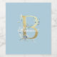 Lindo design com letra "B" em ouro com detalhes florais em aquarela e texto branco personalizável sobre fundo azul claro.