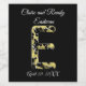 Celebrar um dia de casamento muito especial com estas etiquetas de garrafa de vinho. Estas etiquetas contêm uma bela e elegante letra E monograma. O E inicial apresenta um estilo antigo ou antigo de ouro com sotaques pretos. O grande monograma centralizado é acompanhado pelos nomes da noiva e do noivo junto com a data do casamento. O fundo preto permite que o nome do script seja facilmente visto. Tanto a mensagem como o nome e a cor de fundo podem ser personalizados se desejar. Estas etiquetas são uma forma perfeita de personalizar a mesa de recepção ou oferecer uma guarida para os seus convidados de casamento.