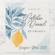 Este elegante e moderno limão e azul deixa a etiqueta de vinho de casamento com fundo de aquarela é perfeito para um casamento moderno e na moda. A design moderna apresenta um belo romântico, a Sicília inspirou um limão de aquarela num ramo de folhas azul. Ilustração do tema botânico romântico para um casamento chic. casamento moderno, casamento italiano, casamento Sicília, limões aquosos, celebração de jardim, casamento de moda, minimalista, jardim botânico, amarelo e azul, decoração de frutas,