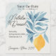 Este casamento elegante e trendy de limão e folhas azuis salvou a etiqueta da garrafa de vinho com fundo de aquarela é perfeito para um casamento moderno e na moda. A design moderna apresenta um belo romântico, a Sicília inspirou um limão de aquarela num ramo de folhas azul. Ilustração do tema botânico romântico para um casamento chic. casamento moderno, casamento italiano, casamento Sicília, limões de aquarela, celebração de jardim, fruta, casamento de moda, minimalista, jardim botânico, amarelo e azul, casamento orçamentário,