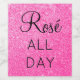 Etiqueta de vinho "Rosé o dia todo" elegante, na moda, feminina, com fundo de purpurina rosa vibrante e escrita preta.